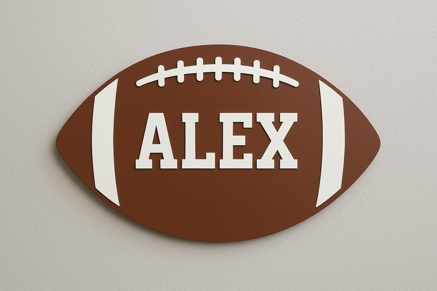 Celebrate your love for the game with a personalized football name sign that’s perfect for bedrooms, man caves, game rooms, or as a one-of-a-kind gift. Crafted with precision, this sign features your custom name or team in a bold football design that truly stands out.